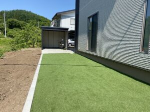 こちらもHPできる前ですが、5月に飯綱町にて、戸建ての外構工事をしました。 土間コンクリートや人工芝、カーポート、倉庫など様々な工事をさせて頂きました👷🏼♂️